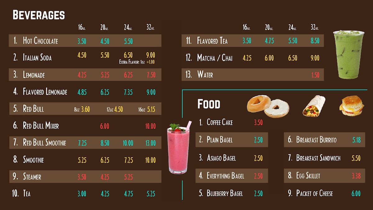 - Accessible Treats: Savor delicious bagels, energizing smoothies, and delightful desserts like the moist coffee cake.