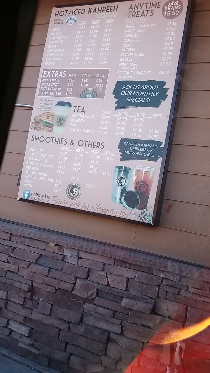 Kahpeeh Kah-ahn Ute Coffee House Menu